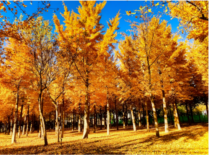 銀杏林位于臨猗三管鎮(zhèn),是臨猗縣和鹽湖區(qū)、萬榮縣的交界處,這里一行行銀杏樹排列整齊,如同在進行優(yōu)美的團體操表演,有風(fēng)吹過,枝葉搖曳,好似萬千金色蝴蝶在空中起舞,坐在銀杏樹下,那扇形的銀杏葉鋪滿了林間的每一處角落,一地奪目的金黃,無不令人情愿迷失在這金色的秘境里。