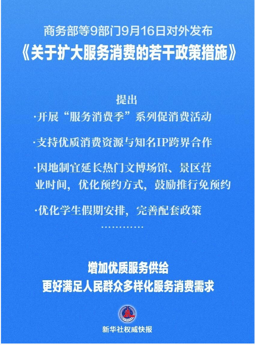 9月16日,商務部等9部門印發(fā)《關于擴大服務消費的若干政策措施》。