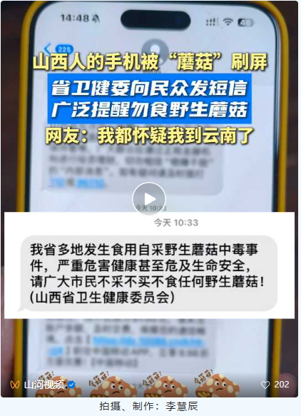 9月12日,太原不少市民收到一則手機短信,“我省多地發(fā)生食用自采野生蘑菇中毒事件,嚴重危害健康甚至危及生命安全,請廣大市民不采不買不食任何不明毒性的野生蘑菇(山西省衛(wèi)生健康委員會)”。近期我省雨水較多,適合野蘑菇生長。8月27日以來,我省食源性疾病監(jiān)測系統(tǒng)接到太原市、晉中市、忻州市因食用自采野生蘑菇導致的肉褐鱗環(huán)柄菇中毒的病例報告,個別病例病情較重。