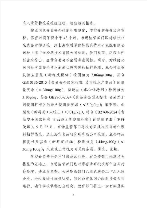 今日(23日),針對(duì)市民反映的上海市部分學(xué)校午餐中蝦仁炒蛋存在問題一事,上海市公安局、上海市市場(chǎng)監(jiān)督管理局、上海市教育委員會(huì)發(fā)布情況通報(bào)。涉事企業(yè)綠捷公司涉嫌瞞報(bào)食品安全相關(guān)信息,目前公安機(jī)關(guān)已立案?jìng)刹椋⒖刂葡嚓P(guān)人員。