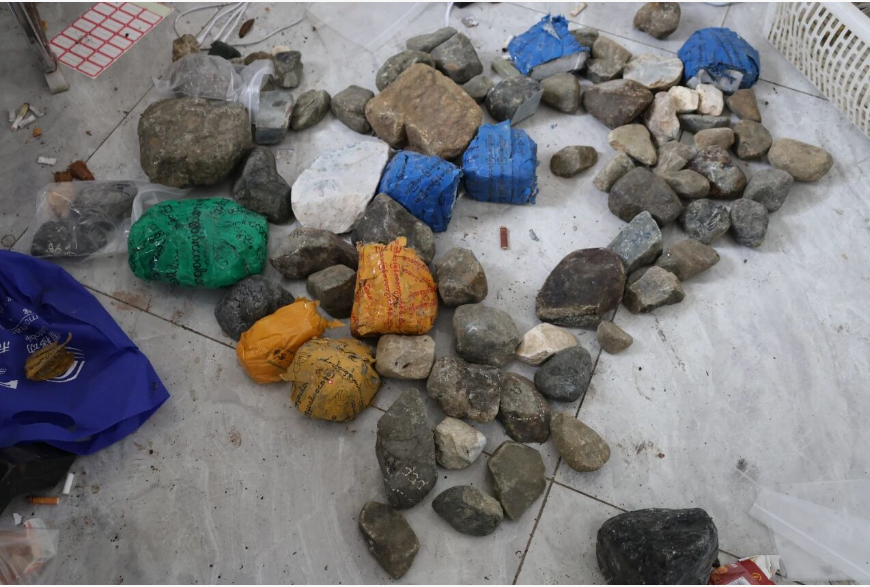 9月16日下午接到通報后,我們就立即安排人員對窩點、嫌疑人進行落地研判,通過前期摸排,發(fā)現(xiàn)嫌疑人在一出租房內(nèi)實施賭石詐騙。