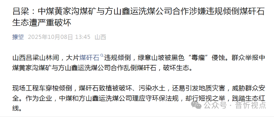 呼吁當?shù)夭块T嚴查嚴懲,企業(yè)需正視整改,還呂梁綠水青山。生態(tài)保護無僥幸,犧牲環(huán)境換利益必受制裁。