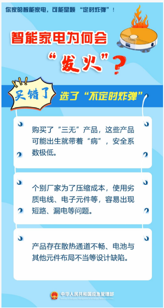 智能家電雖“省心”但不能掉以輕心凡是和“電”打交道的設(shè)備都有可能存在火災(zāi)隱患智能家電為何會“發(fā)火”?如何給家電上個“安全鎖”?↓↓↓