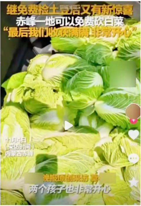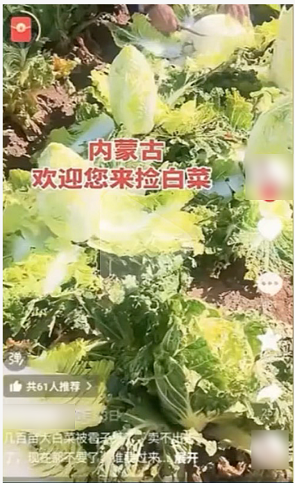 近日,一則“白菜免費”的不實視頻在網上廣泛傳播后,導致內蒙古赤峰一菜地種植戶近200畝白菜被聞訊涌來的人群“白采”,損失慘重。