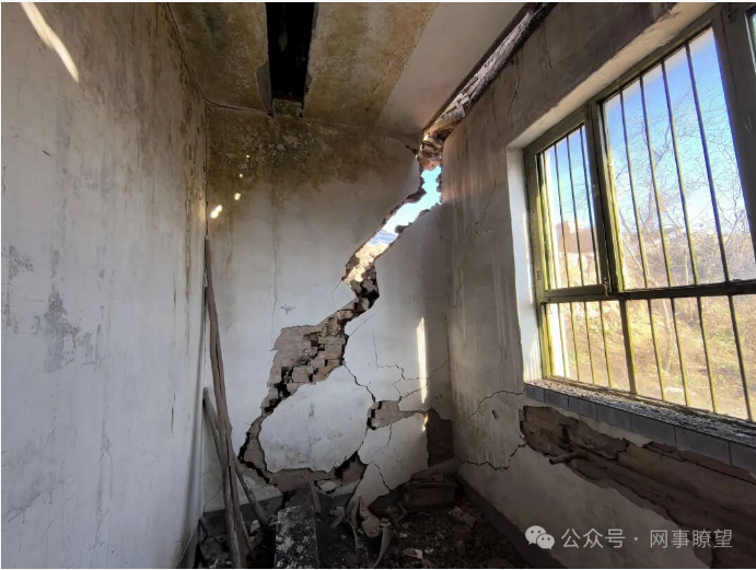 實地走訪該村時看到,危房景象令人揪心:確實村民房屋均出現不同程度的結構性損壞,部分墻面布滿蛛網狀裂縫;部分裂縫寬度達數厘米,可直接窺見墻體外;有房屋的門窗因墻體嚴重變形,出現無法閉合的情況。每逢降雨,雨水順著裂縫灌入室內,導致墻面大片脫落、地面泥濘不堪,村民的居住環(huán)境極度惡劣。“現在住在這里每天都提心吊膽,晚上根本不敢熟睡,就怕房子突然坍塌?!币晃淮迕竦谋硎?,道出了全村人的共同焦慮。